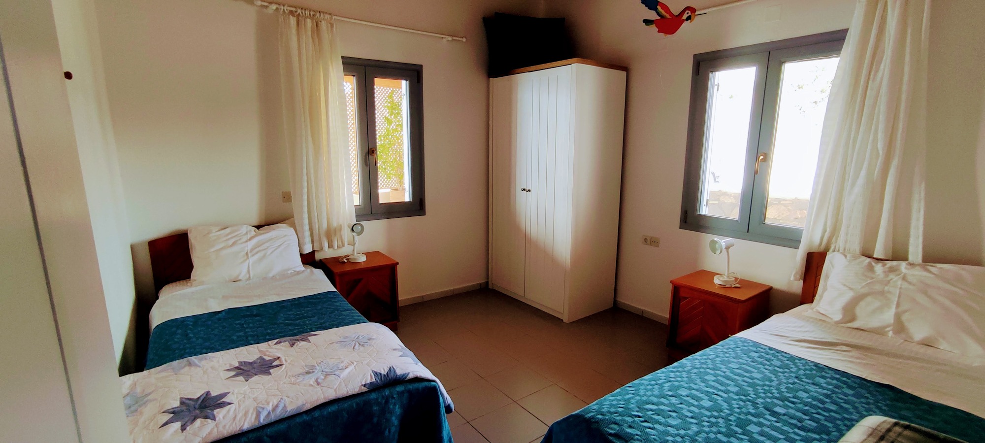 The total surface of the house is 65 square meters and has two bedrooms - one with a double bed and the other with two single beds, a living room with fully equipped kitchen and a bathroom with shower.
