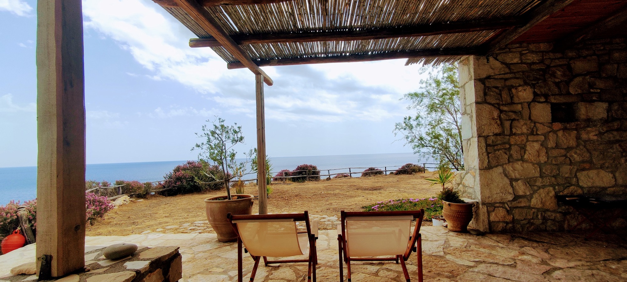 This house is located on the southernmost tip of the cape just above the sea. It has panoramic views of both bays and the visitor feels himself on a boat.